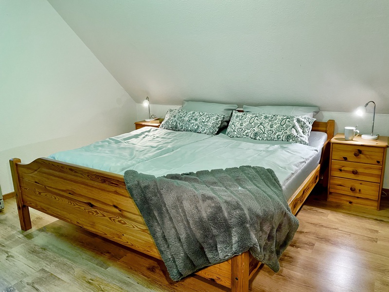 Im Obergeschoss unseres Ferienhauses erwarten Sie zwei liebevoll eingerichtete Schlafzimmer, die Ruhe und Komfort für die ganze Familie bieten.